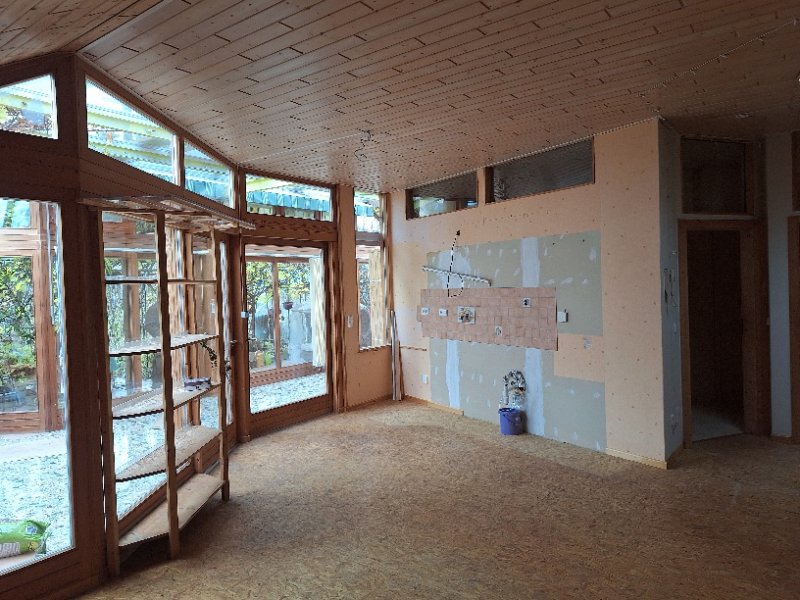Ca.130qm Wohnfläche, 3,5 Zimmer, Wohnküche, beheitzbarer Wintergarten (Ofen). Vom Eingang/Haustüre neben der Doppelgarage und Keller führen 15 Stufen zum Wintergarten am Haus mit Blick auf die Terrasse und den Garten. Das Haus wird mit einer fast 10 KWp-PV-Anlage geheitzt, Strom erzeugt und hat 2 Öfen (Holz). Glasfaseranschluss ist beantragt.