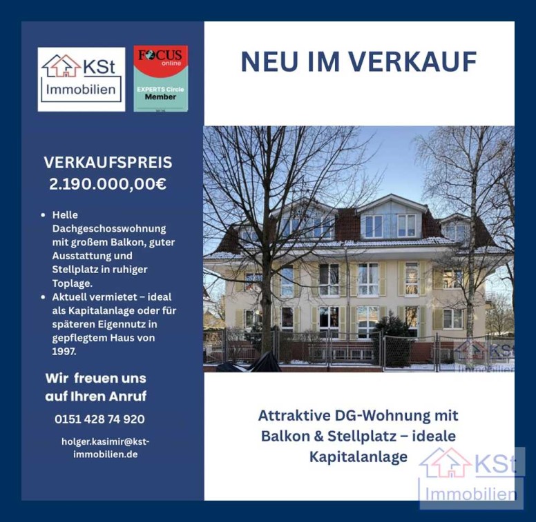 Du suchst etwas Besonderes? Diese lichtdurchflutete Dachgeschosswohnung ist mehr als nur vier Wände – sie ist dein Rückzugsort über den Dächern, in einer ruhigen und super gefragten Lage. Großzügiger Balkon, moderne Fußbodenheizung, clevere Raumaufteilung – alles da für ein entspanntes Leben mit Stil.