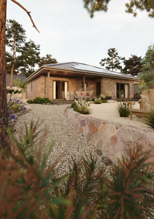 Modern & solide: Verklinkerter Winkelbungalow für Anspruchsvolle