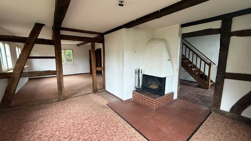 Der historische Fachwerkstil, geprägt von sichtbaren Holzbalken, verleiht dem Haus eine unverwechselbare Note und schafft eine einladende Atmosphäre, die zum Verweilen einlädt. Das Haus erstreckt sich über zwei Etagen und verfügt über vier Schlafzimmer, ein Badezimmer sowie ein zusätzliches Gäste-WC. Zudem ist ein Keller vorhanden, der zusätzlichen Stauraum bietet.