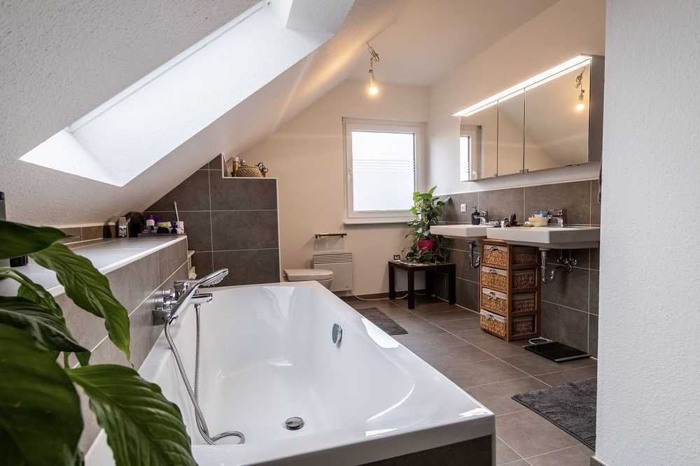 Haustechnik-/Hauswirtschaftsraum komplettieren das Erdgeschoss. Im Dachgeschoss
