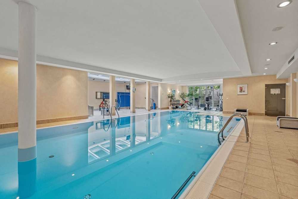Besonders hervorzuheben ist der hochwertige Wellnessbereich, der den Komfort eines Premium-Resorts direkt in Ihren Alltag bringt. Hier stehen Ihnen ein Schwimmbad mit Gegenstromanlage, zwei Saunen, moderne Fitnessgeräte sowie ein direkter Zugang zum sonnigen, gepflegten Gemeinschaftsgarten zur Verfügung. Wellness, Bewegung und Erholung verschmelzen auf einzigartige Weise, sodass Sie luxuriösen Lifestyle genießen können, ohne das Haus verlassen zu müssen. Alle Einrichtungen sind bequem mit dem Fahrstuhl erreichbar, sodass Sie jederzeit mühelos auf alle Annehmlichkeiten zugreifen können.