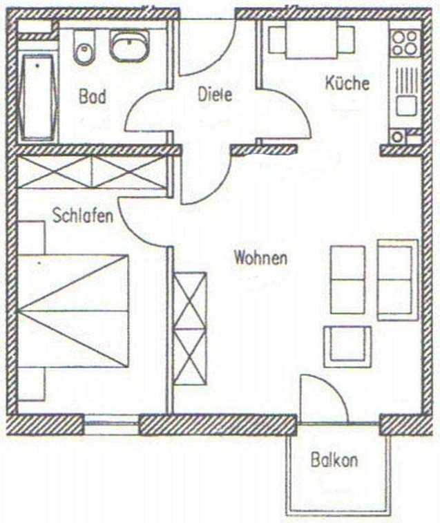 Helle 2-Zi.-Whg. mit Süd-Balkon, ca. 49,9 m² Wfl., geräumiges Wohnzimmer, Schlafzimmer, Küche, Bad mit Wanne WC und Waschmaschinenanschluß, Flur, Kellerabteil und TG-Stellplatz. Der TG-Stellplatz (Duplex-Parker) ist im Kaufpreis enthalten.