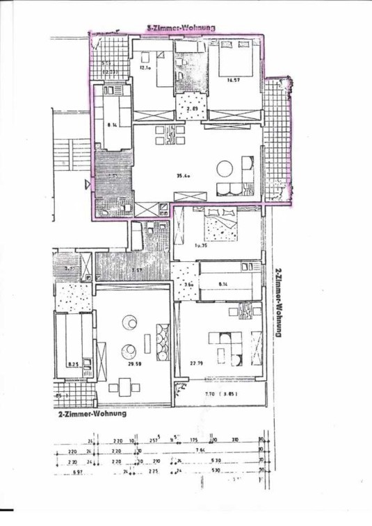 Die zum Verkauf stehende Wohnung liegt im 3. OG und hat 3 Zimmer, Diele, Küche, Bad, 2 Balkone und verfügt über 91 qm Wfl.