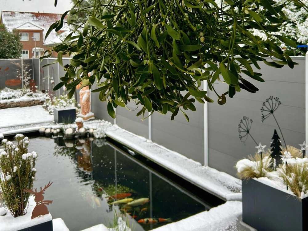 Besonders hervorzuheben ist der großzügige Garten mit östlicher Ausrichtung, der mit einer Zisterne, einem Koi-Teich sowie einem kleinen Pool ausgestattet ist – ein echtes Highlight für Naturliebhaber und alle, die im Alltag einen Rückzugsort im Grünen schätzen. Die angrenzende überdachte und beheizte Terrasse lädt zu entspannten Stunden im Freien ein.