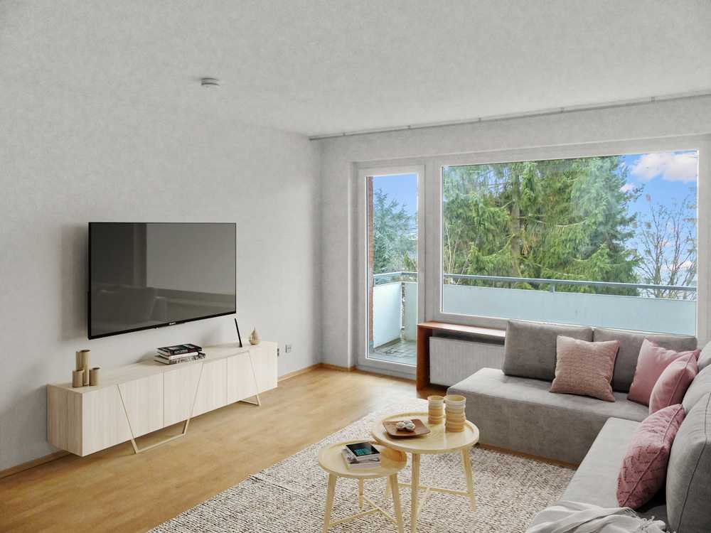 Aus Rücksicht auf die derzeitigen Mieter wurden die Fotos vor deren Einzug aufgenommen und anschließend digital möbliert. So erhalten Sie einen realistischen Eindruck der Räumlichkeiten, ohne die Privatsphäre der Bewohner zu beeinträchtigen.