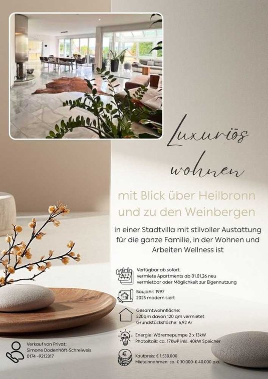 Luxuriös wohnen mit Blick über Heilbronn zu den Weinbergen
