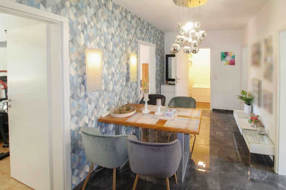 Über das Treppenhaus erreichen Sie die Wohnung im 1. Obergeschoss des Mehrfamilienhauses und verfügen hier über rund 77 m² Wohnfläche. Zur Verfügung steht hier dank 3 Zimmern, darunter 2 Schlafzimmer, die Möglichkeit, die Eigentumswohnung mit Ihrer Familie zu bewohnen. Ebenfalls gehört ein Badezimmer mit Badewanne zu den Räumlichkeiten. Geboten werden dank der soliden Ausstattung außerdem eine moderne Einbauküche, ein Glasfaseranschluss sowie ein Laminatboden und viele weitere attraktive Details. Offen gestaltet schafft der Grundriss einen fließenden Übergang, wodurch eine einladende und geräumige Atmosphäre entsteht.