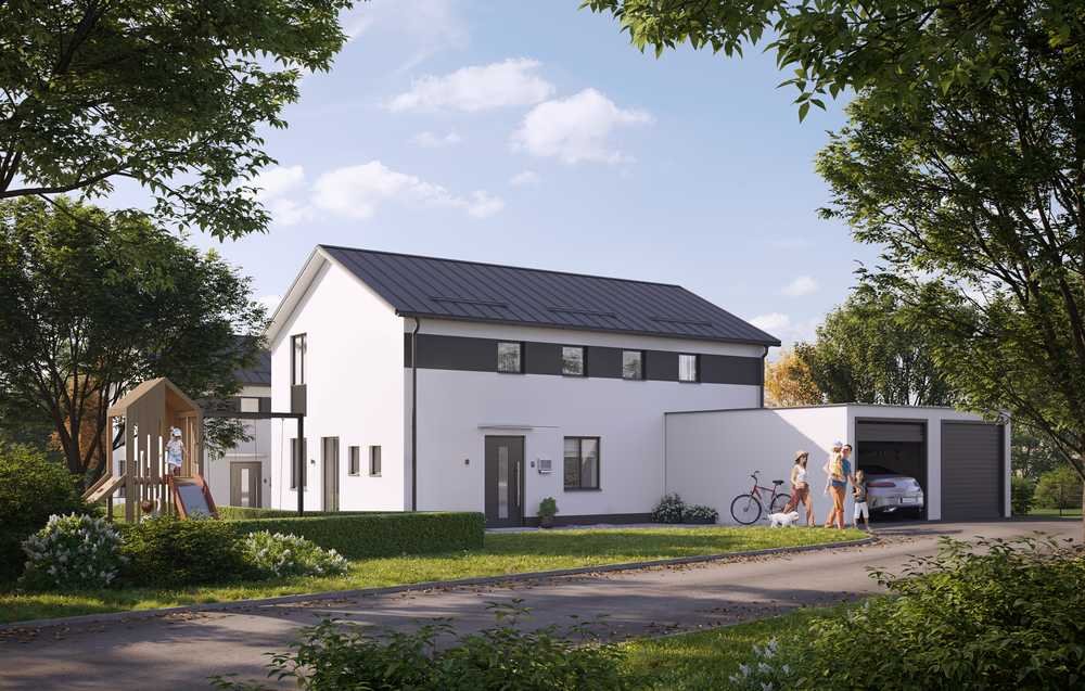 Eine großzügige Doppelgarage ist bereits in der Planung enthalten und bietet ausreichend Platz für Ihre Fahrzeuge.