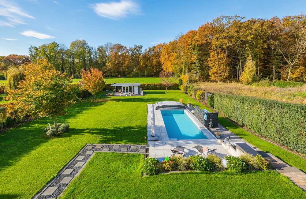 Diese außergewöhnliche Bauhaus-Villa aus dem Jahr 2020 repräsentiert Architektur auf höchstem Niveau und verbindet zeitlose Klarheit mit modernster Haustechnik. Auf dem 1.480 m² großen Grundstück eröffnet sich eine eindrucksvolle Symbiose aus Design, Großzügigkeit und natürlicher Eleganz. Die 193 m² große Wohnfläche ist lichtdurchflutet, perfekt proportioniert und auf anspruchsvolles Wohnen ausgelegt. Vom Entrée aus öffnet sich der weitläufige Wohn-, Koch- und Essbereich, der durch seine architektonische Linienführung, großflächige Verglasungen und fließende Übergänge begeistert. Hier verschmelzen Innen- und Außenbereich zu einer harmonischen Einheit. Der Blick fällt unmittelbar auf den exklusiv angelegten Garten, der mit seinem traumhaften Waldblick ein Höchstmaß an Ruhe, Privatsphäre und naturnahem Wohnen garantiert. Eine praktische Zubereitungsküche sowie ein großzügiger Hauswirtschaftsraum runden das Erdgeschoss ab und schaffen wertvolle Komfortzonen, die den Alltag effizient unterstützen. Das Obergeschoss präsentiert sich als elegante Ruhezone des Hauses. Drei potenzielle Schlafzimmer, jeweils mit Zugang zu den Dachterrassen, bieten individuelle Gestaltungsmöglichkeiten und ein exklusives Wohngefühl. Ein hochwertig gestaltetes Badezimmer mit angrenzendem Ankleidebereich ergänzt diese Ebene und überzeugt mit entspannender Wohlfühlatmosphäre. Die Villa besticht durch eine durchgehend exklusive Ausstattung: edle Materialien, präzise Verarbeitung und eine Haustechnik auf modernstem Niveau sorgen für Effizienz, Sicherheit und Wohnkomfort. Der Außenbereich setzt eindrucksvolle Akzente: Der Pool mit Gegenstromanlage begeistert sowohl Sportler als auch Wellness-Liebhaber. Zwei Garagen und ein Carport vervollständigen das Gesamtbild und bieten ausreichend Stellfläche für den Fuhrpark. Zum Verkaufsumfang gehört eine – direkt angrenzende – Landwirtschaftsfläche (Grünland) von rund 9.000 m², die auf Wunsch auch exkludiert werde kann.