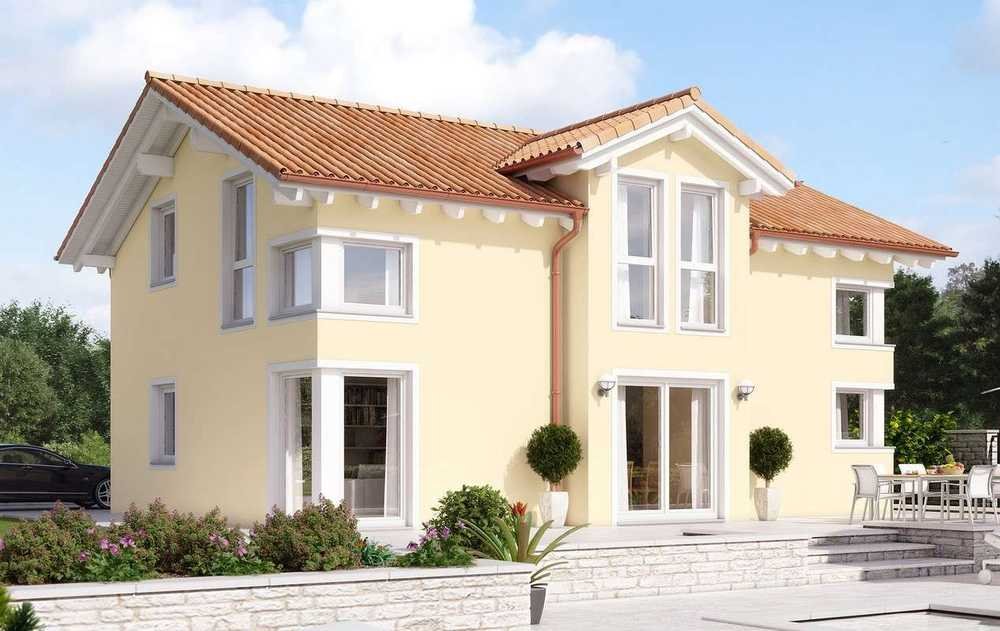 Mediterranes Einfamilienhaus mit Satteldach-Querhaus