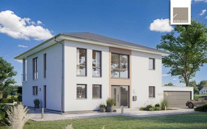 Der Kreativität sind in Ihren eigenen vier Wänden keine Grenzen gesetzt! Die Stadtvilla Pallas ist ein wahr gewordener Wohntraum der Moderne. Auf zwei Geschossen finden Sie insgesamt 5 lichtdurchflutete Räume, die dem hohen Anspruch an maximalen Wohnkomfort gerecht werden. Eines der Highlights im Erdgeschoss ist der offene Wohn- und Essbereich, der mit einem Tunnelkamin optisch voneinander getrennt werden kann. Die Küche bietet Platz für eine schöne Kochinsel, die vor allem die Herzen von Hobby-Köchen höher schlagen lässt. Der Eingang zur Speisekammer wird modern als Teil der Küchenfront integriert. Das Erdgeschoss wird komplettiert durch ein Home-Office, ein Duschbad sowie den Hauswirtschaftsraum.