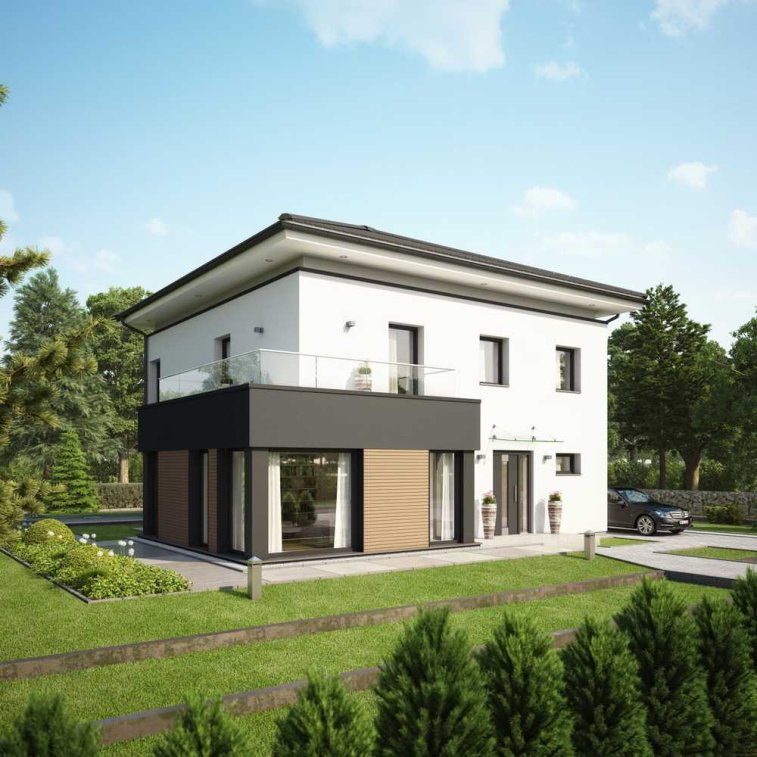 Das Bien-Zenker CONCEPT-M 193 präsentiert sich als moderne Interpretation der klassischen Stadtvilla. Mit zwei Vollgeschossen überzeugt dieses beeindruckende Bauwerk nicht nur durch seine ansprechende Architektur, sondern auch durch sein großzügiges Raumangebot. Der elegante, avantgardistische Look zieht sofort alle Blicke auf sich und lässt Sie schon beim ersten Anblick von Ihrem zukünftigen Zuhause träumen. Im Erdgeschoss, wo der Luftraum über dem Essbereich für ein lichtdurchflutetes und offenes Wohngefühl sorgt, können Sie unvergessliche Momente mit Ihrer Familie und Freunden erleben. Im Obergeschoss erwartet Sie ein großes Familienbad, das durch eine separate Toilette zusätzlichen Komfort bietet und so den Alltag erleichtert.