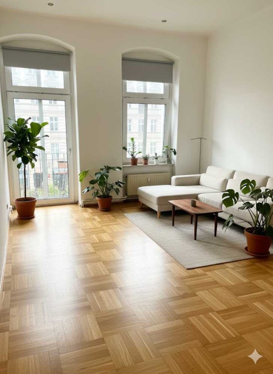 Schon beim Betreten spürst du den Flair des Altbaus von 1900: hohe Decken, der charakteristische Grundriss und das tolle Licht, das durch die großen Fenster fällt. Das Herzstück der Wohnung ist der großzügige Wohnbereich mit einem französischen Balkon, der dir einen coolen Blick auf das pulsierende Leben der Kantstraße schenkt. Der perfekte Spot für einen Morgenkaffee oder einen Drink am Abend.