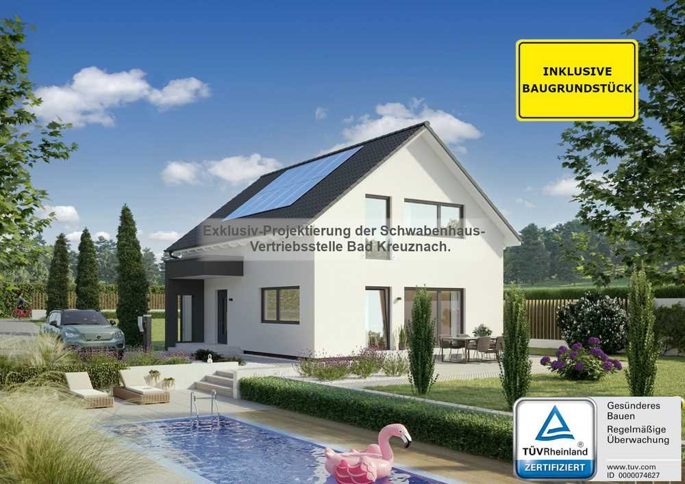 Hier können Sie als Bauherr die Hausbau-Firma SCHWABENHAUS mit der Errichtung eines energieeffizienten Hauses mit Festpreisgarantie und zeitnaher Fertigstellung beauftragen und Ihre Bauwünsche INDIVIDUELL auf einem wunderschönen Baugrundstück verwirklichen, welches Sie vorher direkt „von privat“ erwerben würden. -- Die hier dargestellten Pläne / Grundrisse stellen eine mögliche Bebauung des Grundstücks dar.