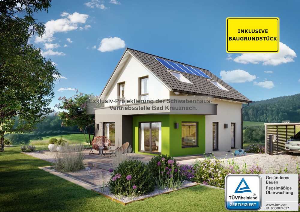 Hier können Sie als Bauherr die Hausbau-Firma SCHWABENHAUS mit der Errichtung eines energieeffizienten Hauses mit Festpreisgarantie und zeitnaher Fertigstellung beauftragen und Ihre Bauwünsche INDIVIDUELL auf einem wunderschönen Baugrundstück verwirklichen, welches Sie vorher direkt „von privat“ erwerben würden. -- Die hier dargestellten Pläne / Grundrisse stellen eine mögliche Bebauung des Grundstücks dar.