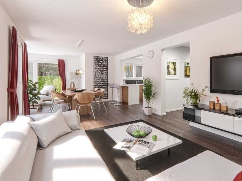Der Gestaltungsentwurf "CLOU 119" ist ein kompaktes und modernes Haus für Sie und Ihre Familie. Der attraktive Cube im Bereich Wohnen und Essen, in Verbindung mit der offenen Küche, schafft ein großzügiges Wohnerlebnis. Im Dachgeschoss ist neben Bad und Elternschlafzimmer geräumiger Platz für die beiden Kinderzimmer. Smarte Dachüberstände unterstreichen den modernen Charakter der Architektur.