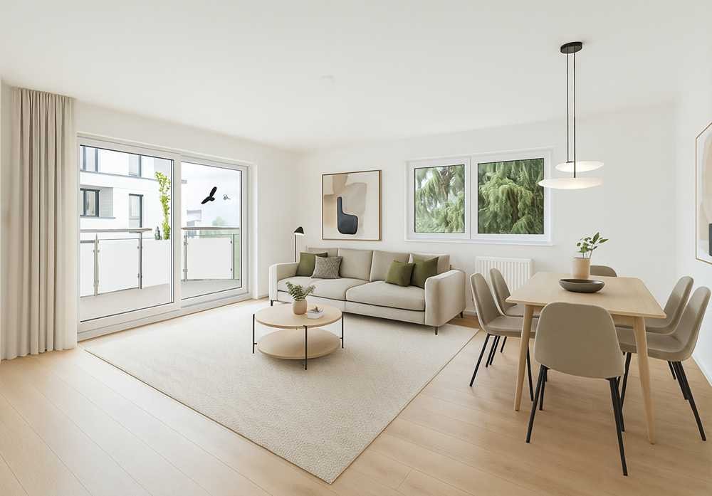 Auf ca. 96 m² Wohnfläche erwartet Sie eine helle und gut strukturierte Wohnung. Das geräumige Wohnzimmer bietet ausreichend Platz für einen Wohn-Essbereich und führt direkt auf den Balkon – ideal für ein Frühstück in der Morgensonne oder entspannte Stunden mit Blick ins Grüne. Zwei weitere Zimmer lassen sich flexibel als Schlaf-, Arbeits- oder Kinderzimmer nutzen.
