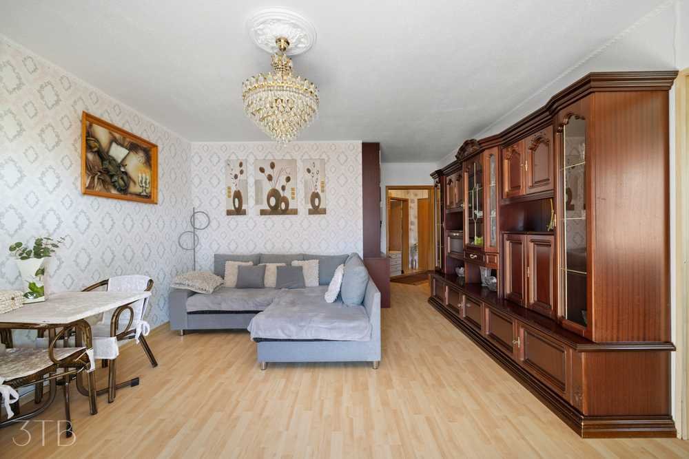 - sonniges Wohnzimmer mit bodentiefem Fenster und Zugang zum Westbalkon