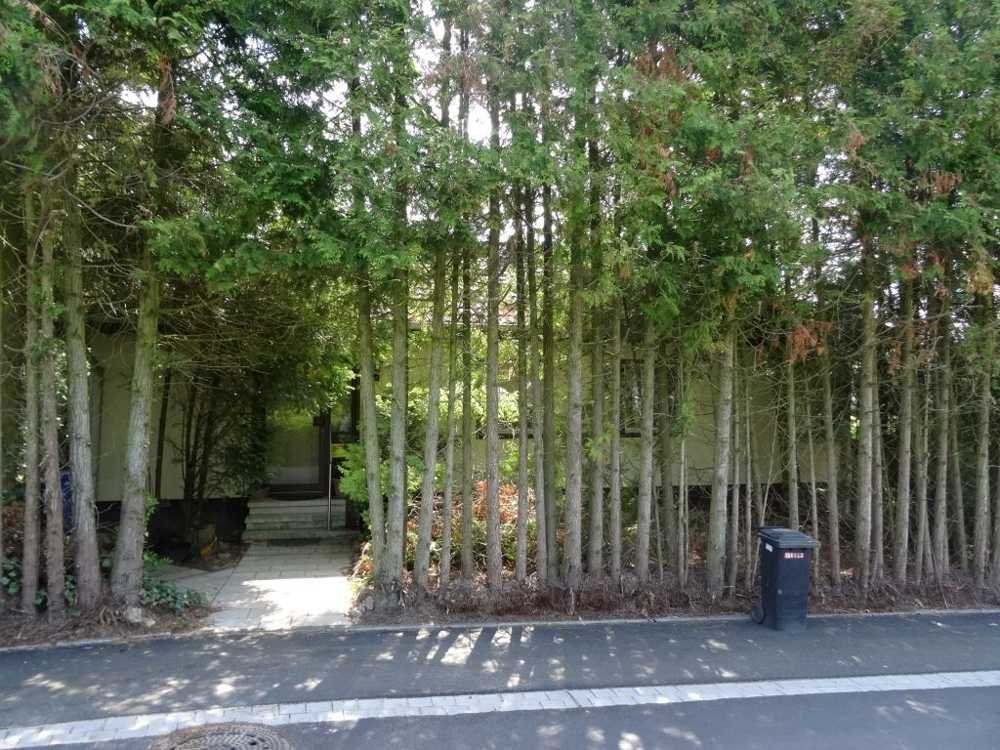 Das Haus steht auf einem 891 m² grossen Grundstück, das nach Südosten abfällt. Das Gartenareal um das Haus ist stark eingewachsen bis verwildert, hier sind grössere Rodungen erforderlich. Seitlich am Haus befindet sich ein einfacher hölzener Carport mit Zugang in den Garten.