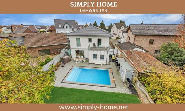 Erbaut im Jahr 2021, verbindet das Anwesen zeitlose Eleganz mit hochwertigen Ausstattungsdetails und einem außergewöhnlich großzügigen Außenbereich, der mit Pool, Terrassenflächen und einem harmonischen Gartenambiente beeindruckt.