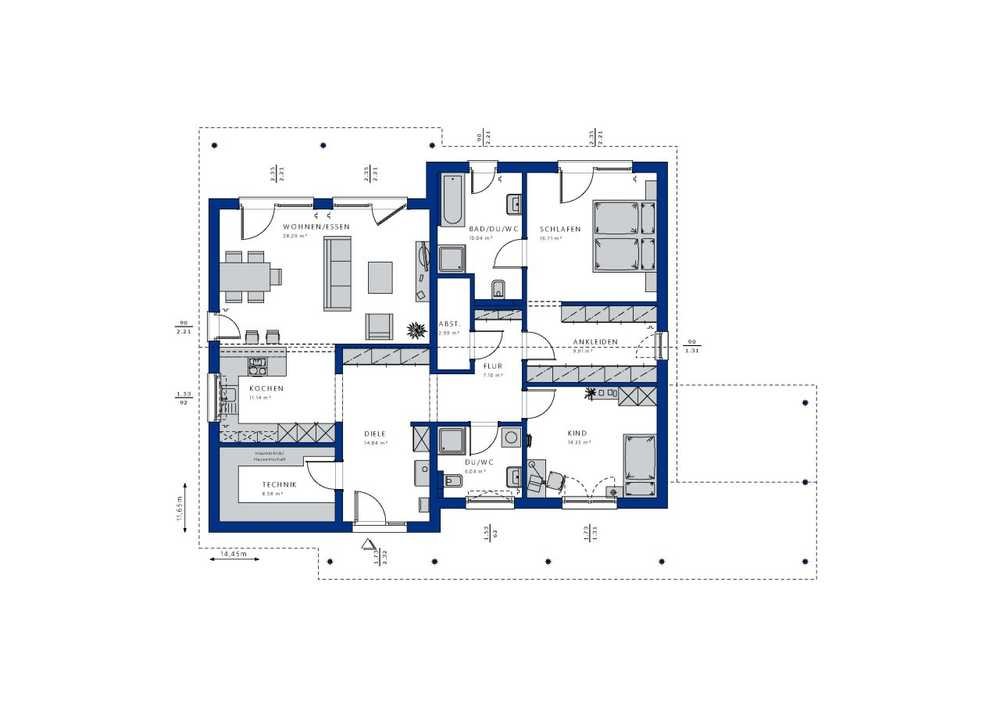Den modernen Wohnansprüchen folgend, lässt sich die gesamte Gartenseite mit großformatigen Fenstern ausstatten.