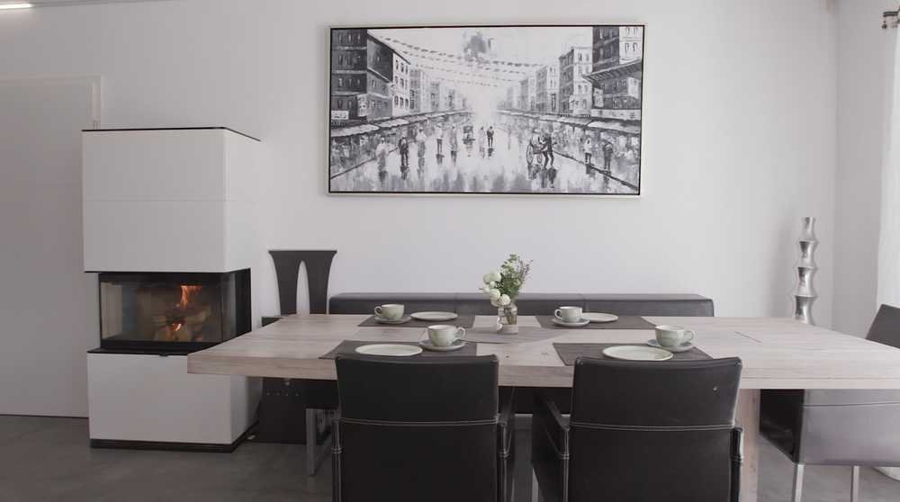 Ein moderner Kaminofen spendet behagliche Wärme in der kälteren Jahreszeit.