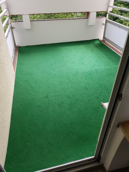 Großer Balkon und zugehöriger großer Garten im Innenhof.