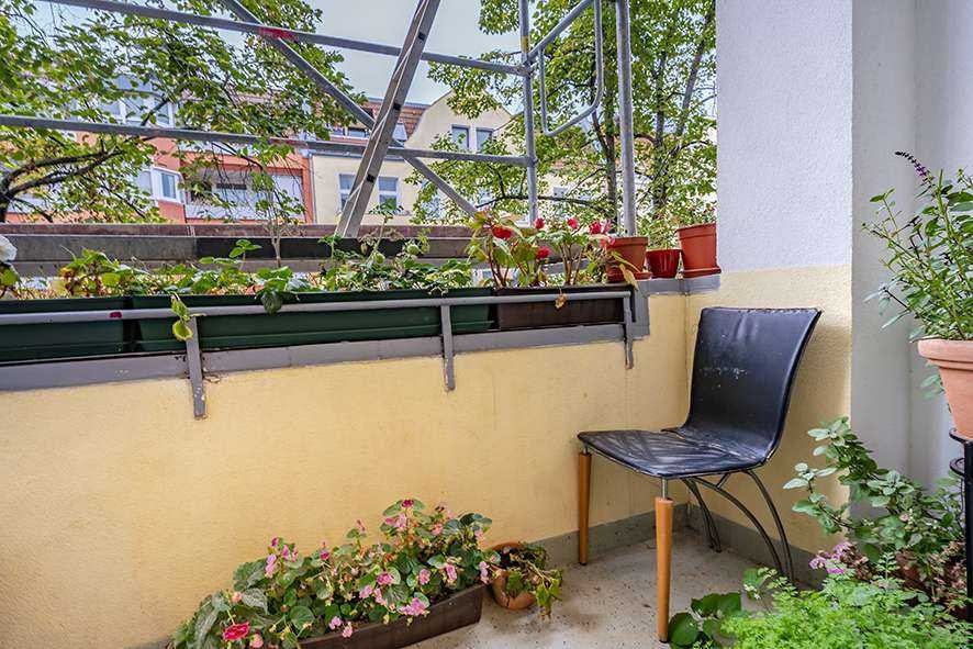 Typische Altbauelemente prägen das Wohnambiente: großzügige Raumhöhen mit ornamentalem Stuck, authentische Kassettentüren verleihen der Wohnung besonderen Charakter. Der straßenseitige Balkon erweitert den Wohnbereich nach außen. Die funktionale Aufteilung bietet drei helle Zimmer, eine Küche mit Grundausstattung (Herd, Spüle, PVC-Boden), ein innenliegendes Vollbad mit Wanne und einen privaten Kellerraum für zusätzlichen Stauraum.