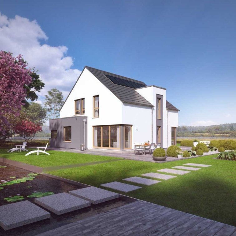 Moderne Architekturelemente wie Übereckverglasungen, Akzente in Holz und Farbe, Erker, Giebel, Balkone und Glasfassaden sind Design-Highlights, die ein designbewusstes Statement setzen. Unterschiedliche Dachformen, wie zum Beispiel ein Sattel- oder Walmdach, und Wohnraumerweiterungen sind weitere Designoptionen, mit denen das EVOLUTION 164 zum