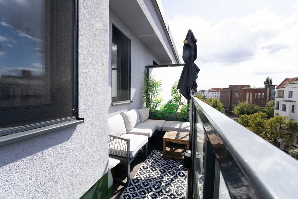 Ein besonderes Highlight ist die großzügige Südwest-Terrasse im vorderen Bereich: Sie eröffnet einen charmanten Blick auf das lebendige Treiben der Kantstraße und wird so zu einer privaten Oase über den Dächern der City West. Ob entspanntes Frühstück im Freien oder das Genießen eindrucksvoller Sonnenuntergänge – die Terrasse lädt zu jeder Tageszeit zum Verweilen ein.