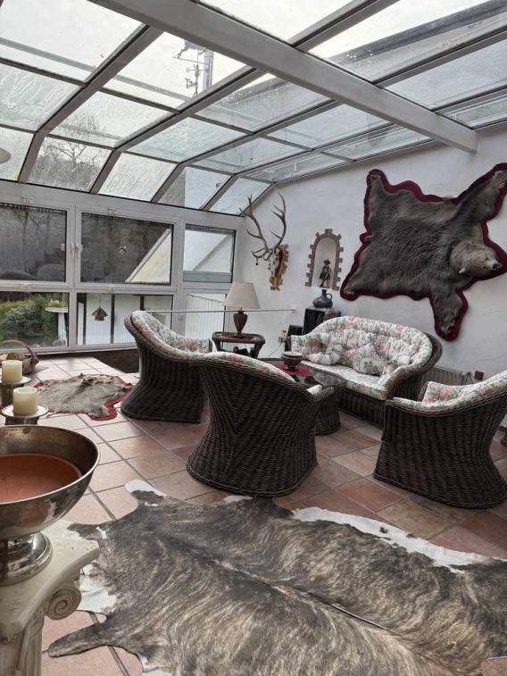 Auf einem großzügigen Grundstück von etwa 1000 m² erwartet Sie eine Oase der Ruhe und Natur. Der liebevoll gestaltete Garten mit einem malerischen Teich lädt zum Entspannen und Verweilen ein, während der lichtdurchflutete Wintergarten den perfekten Raum für gesellige Stunden bietet.