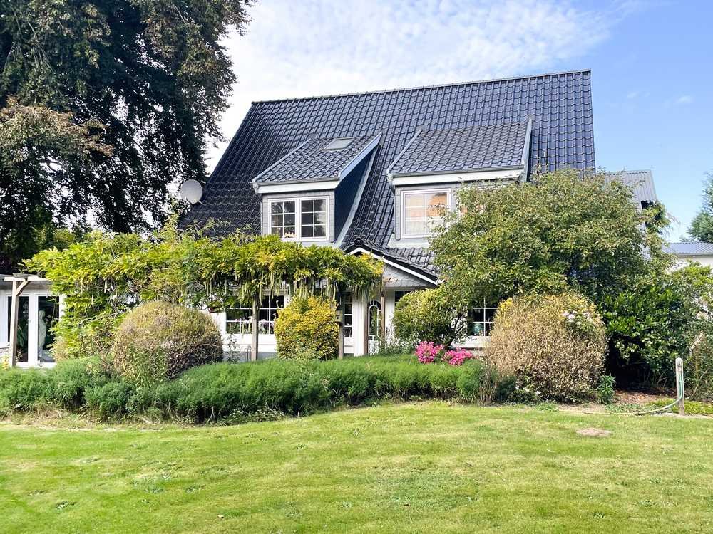 Dieses charmante Einfamilienhaus im Landhausstil aus dem Jahr 1780 bietet auf einem großzügigen Grundstück von ca. 2.002 m² sowohl historische Atmosphäre als auch modernen Komfort. Die Immobilie umfasst eine Hauptwohnung mit ca. 192,5 m² und eine vermietete Einliegerwohnung von ca. 76 m², die sich perfekt als Einkommensquelle oder für zukünftige Nutzungsmöglichkeiten eignet. Die Hauptwohnung verteilt sich auf acht Zimmer, darunter ein großzügiges Wohnzimmer, mehrere Schlafräume sowie ein gemütlicher Wintergarten, der für viel Licht und eine behagliche Atmosphäre sorgt. Die Einliegerwohnung, die bereits vermietet ist, besteht aus dreieinhalb Zimmern und bietet durch ihre gute Ausstattung und separate Eingangsmöglichkeiten ideale Bedingungen für eine langfristige Mietverbindung. Das Gebäude wurde kontinuierlich modernisiert, wobei der historische Charme bewahrt blieb: Das Dach wurde 2017 mit Tonpfannen im klassischen Satteldachstil erneuert und die Fenster wurden größtenteils 2024 mit modernen, zweifachverglasten Fenstern ausgestattet. Die Bäder aus dem Jahr 2000 wurden 2022 mit neuen Waschbecken ausgestattet und die Fußbodenheizung in den Bädern sowie in der Diele sorgt für zusätzlichen Komfort. Die Küche im Landhausstil (2017) ist mit einer hochwertigen Nobilia-Einbauküche samt Granitarbeitsplatte ausgestattet und bildet einen weiteren praktischen sowie ästhetischen Mittelpunkt des Hauses. Die Bodenbeläge bestehen überwiegend aus Fliesen und Holzdielen, im Obergeschoss ist Teppich verlegt. Die Außenfläche des Anwesens ist ebenso großzügig wie vielseitig: Der gepflegte Garten mit Teich, Brunnen, Pavillon und Terrasse lädt zum Verweilen und Entspannen ein. Ein Balkon bietet zusätzlich einen herrlichen Blick ins Grüne. Darüber hinaus gibt es eine Garage, zwei Schuppen und ausreichend Stellplätze auf der Freifläche. Das Anwesen befindet sich in einer ruhigen und idyllischen Nachbarschaft, die viel Privatsphäre bietet, aber dennoch eine gute Anbindung an die Infrastruktur gewährleistet. Ob als großzügiges Familienheim oder als Kombinationsobjekt aus Wohnen und Vermietung – diese Immobilie bietet Ihnen zahlreiche Möglichkeiten, um sowohl eine komfortable Lebensqualität als auch eine langfristige Einkommensquelle zu realisieren. Entdecken Sie das Potenzial dieses einzigartigen Landhauses und machen Sie es zu Ihrem neuen Zuhause!