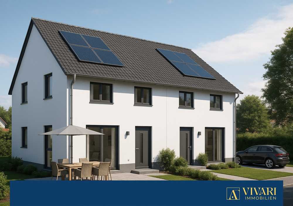 Bei dem angezeigten Bild handelt es sich lediglich um eine Muster Visualisierung. die Doppelhaushälfte befindet sich bereits im Bau und kann besichtigt werden. Die geplante Fertigstellung ist im Frühjahr 2026 und entspricht den aktuellen EnEV-/GEG-Standards. Sie profitieren damit von hoher Energieeffizienz, keiner Sanierungsnotwendigkeit und modernen Ausstattungen wie Wärmepumpe, Fußbodenheizung und optionaler Photovoltaik-Anlage. Je nach Ausführungsstandard kann ein Effizienzhaus-Niveau erreicht werden, was zusätzliche Fördermöglichkeiten und einen gesteigerten Wiederverkaufswert eröffnet.