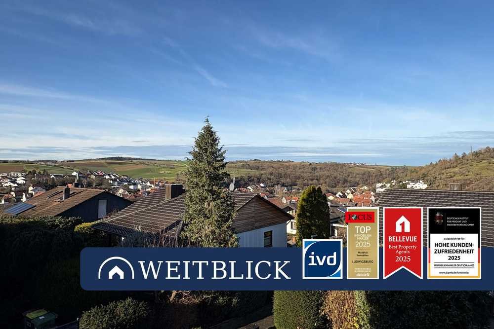 Die Wohnung liegt im Dachgeschoss eines gepflegten Fünffamilienhauses und ist über eine eigene Wendeltreppe erreichbar, welche zugleich den Zugang und einen Balkon auf der Ostseite bildet. Spätestens an der großen Fensterfront des Wohnzimmers eröffnet sich der beeindruckende Weitblick über das Tal von Eberdingen und verleiht dem Raum eine besondere Atmosphäre. Vom westlich ausgerichteten Balkon lässt sich dieser Ausblick zusätzlich in aller Ruhe genießen.