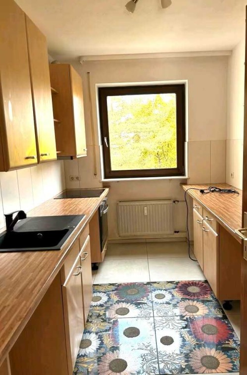 Einladend empfängt Sie der Flur, der direkt in das lichtdurchflutete Wohnzimmer führt. Hier erwarten Sie malerische Ausblicke ins Grüne, während der sonnige Balkon mit Südausrichtung der perfekte Rückzugsort für entspannte Stunden im Freien ist – ideal, um die Seele baumeln zu lassen.