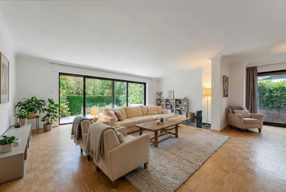 Das Herzstück des Hauses bildet das großzügige Wohnzimmer mit Kamin, das mit seiner warmen Ausstrahlung sofort ein Gefühl von Ankommen vermittelt. Große, bodentiefe Fenster lassen den Wohnraum in natürlichem Licht erstrahlen und geben den Blick in den grünen Garten frei. Von hier aus erreichen Sie die etwa 10 m² große Terrasse – der perfekte Ort für entspannte Sommerabende, gemütliche Familienmomente oder ein Frühstück im Freien.