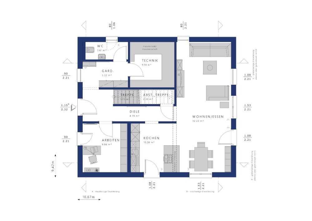 Mit der Ausbaustufe ZAF haben Sie die Möglichkeit, aktiv an der Gestaltung Ihres neuen Zuhauses mitzuarbeiten. Während Bien-Zenker den Rohbau und den technischen Innenausbau übernimmt, können Sie sich um die Böden, Malerarbeiten und Sanitärinstallationen kümmern. Diese Ausbaustufe ermöglicht es Ihnen, Ihre persönliche Note einzubringen und gleichzeitig Kosten zu sparen. Der Bauablauf gestaltet sich somit angenehm und effizient, sodass Sie bald den Schlüssel zu Ihrem neuen Heim in der Hand halten können.
