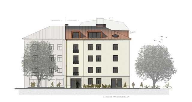 Errichtet im Jahr 1898 nach den Plänen des renommierten Architekten Michael Reiffenstuel jun., gehört das Gebäude zu den historischen Anwesens Schwabings und steht unter Ensembleschutz. Die gegliederte Fassade, historische Flachrisalite sowie das original erhaltene Dachwerk dokumentieren eindrucksvoll den Baustil der Jahrhundertwende und verleihen dem Haus seinen unverwechselbaren Charakter.