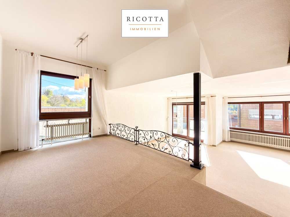 Die helle, moderne Einbauküche ist optimal in den Essbereich integriert und bietet den perfekten Rahmen für gemeinsame Koch- und Genussmomente. Über wenige Stufen erreichen Sie den gemütlichen Wohnbereich, der dank großer Fensterflächen lichtdurchflutet ist und direkten Zugang auf den sonnigen Balkon bietet. Hier genießen Sie entspannte Stunden mit schönem Gartenblick; eine Markise sorgt an heißen Tagen für angenehmen Schatten.