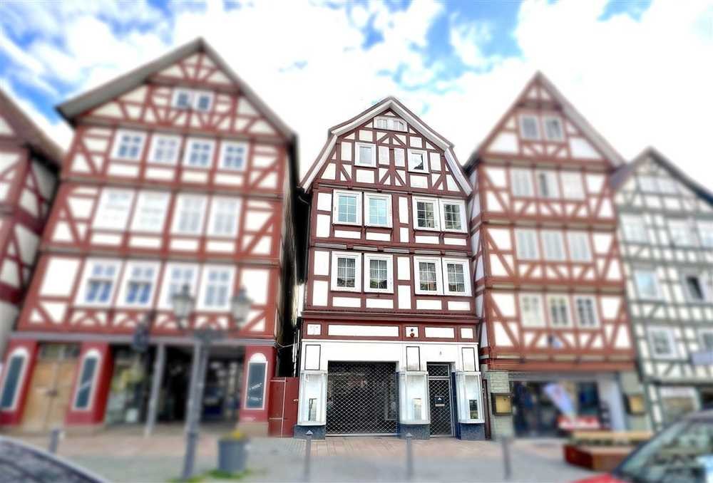 3 Wohnungen oder 5 Apartments: Wohnhaus möbliert, mit Gewerbefläche am Marktplatz in Homberg (Efze)