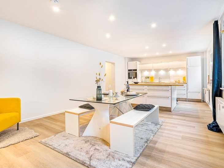 Gerade erst wurde die Wohnung renoviert und saniert. Das Herzstück der Wohnung ist die Designer-Küche von Bulthaup, welche zum gemeinsamen Kochen einlädt und sicherlich zum Lieblingsbereich dieser schönen Wohnung wird. Drei weitere wohlproportionierte Räume zeichnen sich durch multifunktionale Nutzungsmöglichkeiten aus. Jeder Raum darf jede Nutzung erfahren und bietet somit zahlreiche individuelle Gestaltungsmöglichkeiten. Großen Komfort bieten die beiden separaten Badezimmer mit ebenerdigen Duschbereichen.