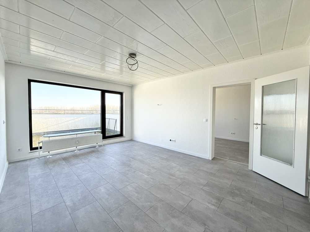 Folgen Sie dem Flur weiter geradeaus, gelangen Sie in den offenen Wohnbereich, der großzügig gestaltet ist und viel Platz für eine Wohnlandschaft sowie einen Essbereich bietet. Die Raumaufteilung ist klar strukturiert und ermöglicht unterschiedliche Möblierungskonzepte. Besonders attraktiv ist der Zugang zur Terrasse, die sich ebenfalls direkt an den Wohnbereich anschließt. Sie bietet eine angenehme Erweiterung des Wohnraums nach draußen und eignet sich ideal zum Entspannen oder für gemütliche Stunden im Freien.