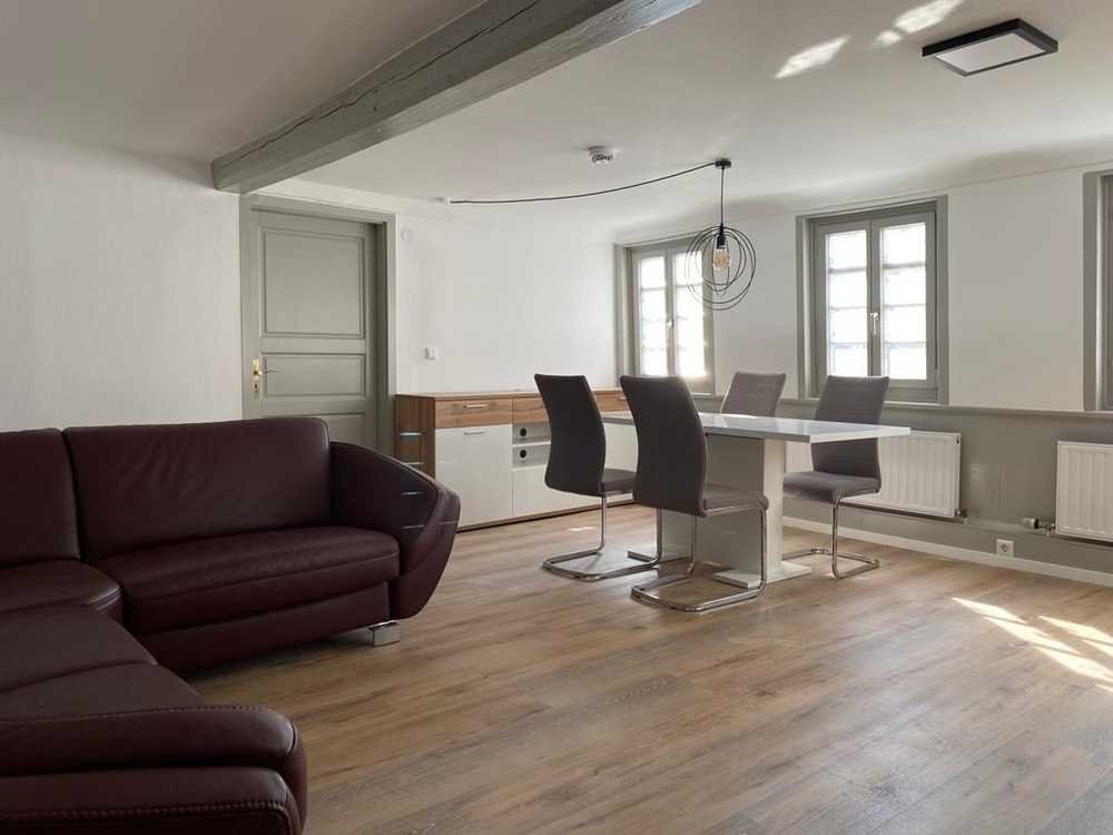 Zum Verkauf steht eine vollständig sanierte 3-Zimmer-Wohnung in einem denkmalgeschützten Fachwerkgebäude, das im Herzen der Gemeinde liegt.