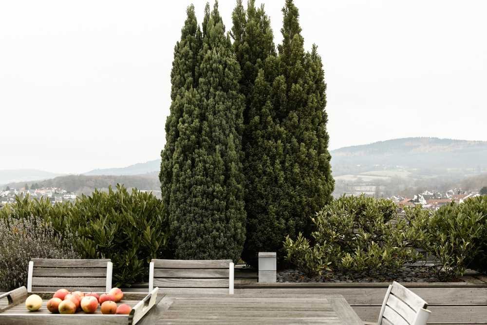 Beim Betreten des Objekts begrüßt der stilvolle Eingangsbereich mit breitem Flur und separatem Hauswirtschaftsraum mit Garderobe. Der Wohnbereich mit direktem Zugang auf die große Dachterrasse ist das Herzstück und bietet eine großzügige und offene Gestaltung. Bodentiefe Fensterfronten lassen viel Tageslicht zu und bieten einen beeindruckenden freien Blick auf die umliegende Landschaft und die Burg Königstein. Die große Dachterrasse, als erweiterter Wohnraum, lädt zum Entspannen ein und bietet atemberaubende Ausblicke ins Tal und bis zum Feldberg. Hier können gesellige Abende unter freiem Himmel in großer Runde verbracht und Momente der Muße in absoluter Privatsphäre und Ruhe erlebt werden. Die moderne, großzügige, dezent in Lichtgrau gehaltene Einbauküche ist ein Ort, an dem kulinarische Fähigkeiten entfaltet werden können.