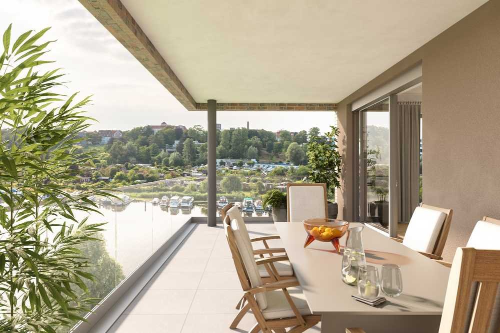 Wohnung 13 bietet Ihnen neben 4 Zimmern ein großes Tageslichtbad und ein weiteres Duschbad. Der große Wohn-/Essbereich führt sie auf die beiden Loggien - von hier aus genießen Sie nicht nur den Blick auf die Lübecker Altstadt, sondern auch den Blick aufs Wasser und in die Natur.