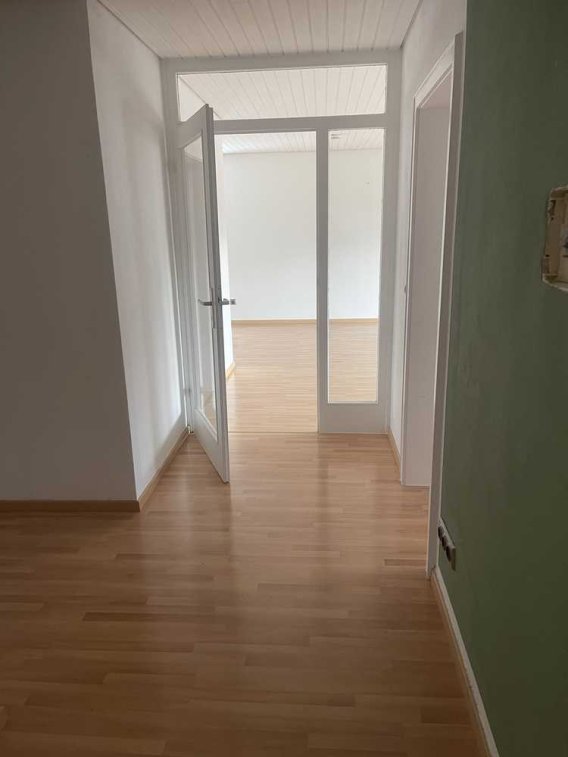 Im leerstehenden Obergeschoss erwartet Sie ebenfalls eine durchdachte Raumaufteilung mit drei Zimmern. Hier finden Sie auch einen einladenden Balkon, der ideal ist, um die frische Luft und die Aussicht zu genießen. Das separate Treppenhaus zwischen den beiden Wohneinheiten garantiert zudem eine angenehme Privatsphäre.