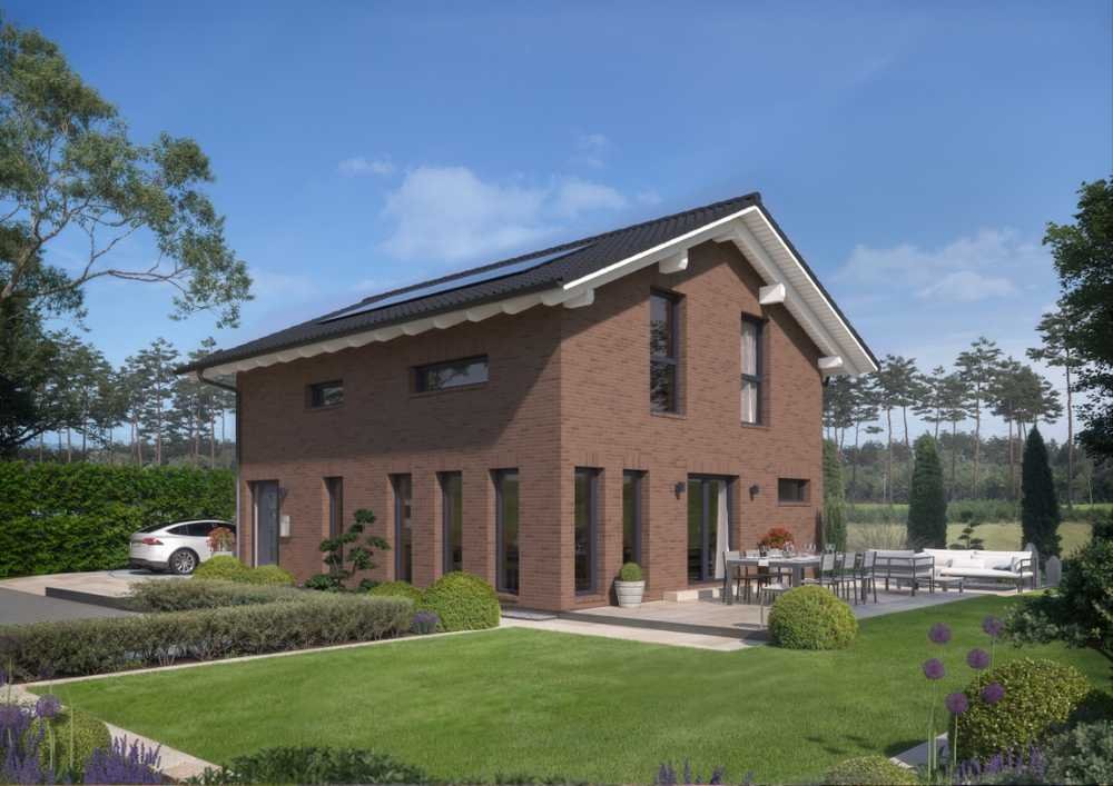 Das großzügige Einfamilienhaus besticht durch die modernen, großflächigen Fenster, die viel Licht ins Innere lassen und zum Verweilen mit Familie und Freunden einladen. Wohnen, Essen und Kochen bilden im Erdgeschoss eine Einheit und bieten über die Terrasse direkten Zugang in den Garten, sodass Sie Ihre Kinder stets im Blick haben. Im Erdgeschoss befinden sich außerdem ein Technikraum sowie ein Gäste-WC. Im Dachgeschoss gibt es keinen Streit um die Auswahl der Zimmer, denn diese sind nahezu gleich groß und im großzügigen Wellness-Bad gibt es am Morgen auch kein Gedränge.