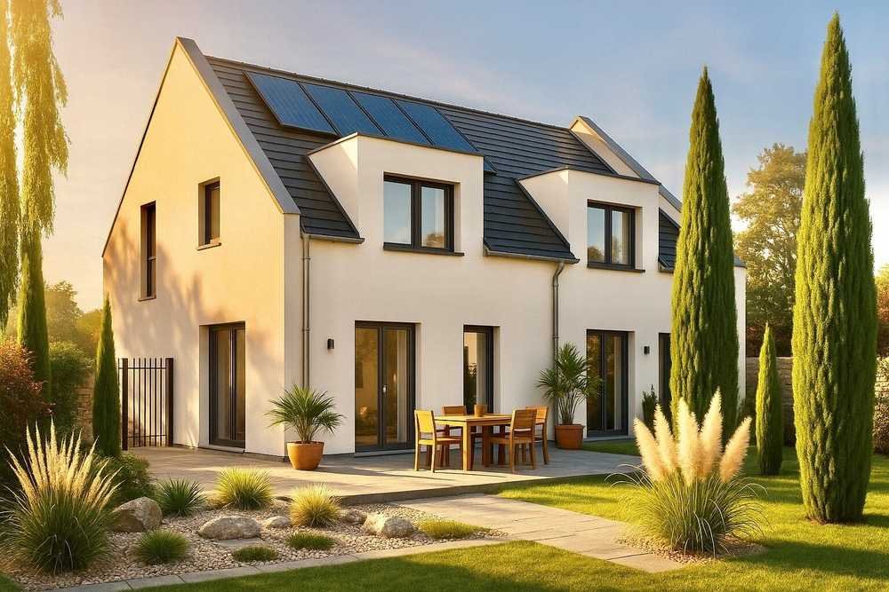 Das Double 7 Haus ist ein architektonisches Highlight, das auf beeindruckende Art und Weise Ästhetik und Funktionalität vereint. Die markante Giebelarchitektur zieht sofort alle Blicke auf sich, während die zeitgemäßen Flachdachgiebel der Fassade einen modernen, eleganten Touch verleihen und für eine helle, lichtdurchflutete Raumgestaltung sorgen. Im Erdgeschoss erwartet Sie ein großzügiger Wohnbereich von über 62 m², der durch weitläufige Glasfronten eine einladende Atmosphäre schafft und durch offene Raumübergänge ein Gefühl von Weite und Helligkeit vermittelt.