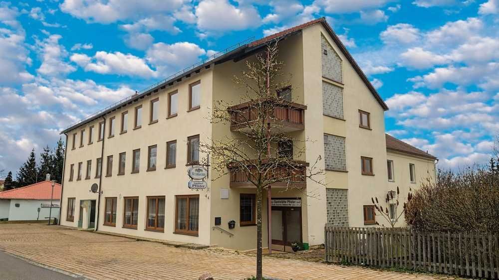 Die ehemalige Pension/Gastwirtschaft mit einer Gesamtwohn- und Nutzfläche von rund 750 m² wurde im Jahr 1965 in solider bauweise errichtet, und bietet vielfältige Nutzungsmöglichkeiten für Gastronomie, Veranstaltungen, Handwerk oder innovative Wohn- oder Ferienkonzepte auf einem Grundstück von ca. 1.699m². Der ehemalige Tanzsaal wurde bereits im Jahr 1954 errichtet und ist mit dem Hauptgebäude verbunden.
